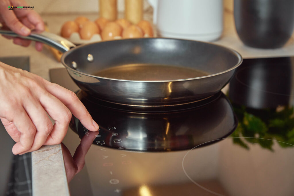 • Heat the Pan: Place the oiled pan on the stovetop over medium heat. Gradually heat the pan. As it heats, the oil will start to smoke. It is normal and indicates the oil bonding with the pan’s surface.