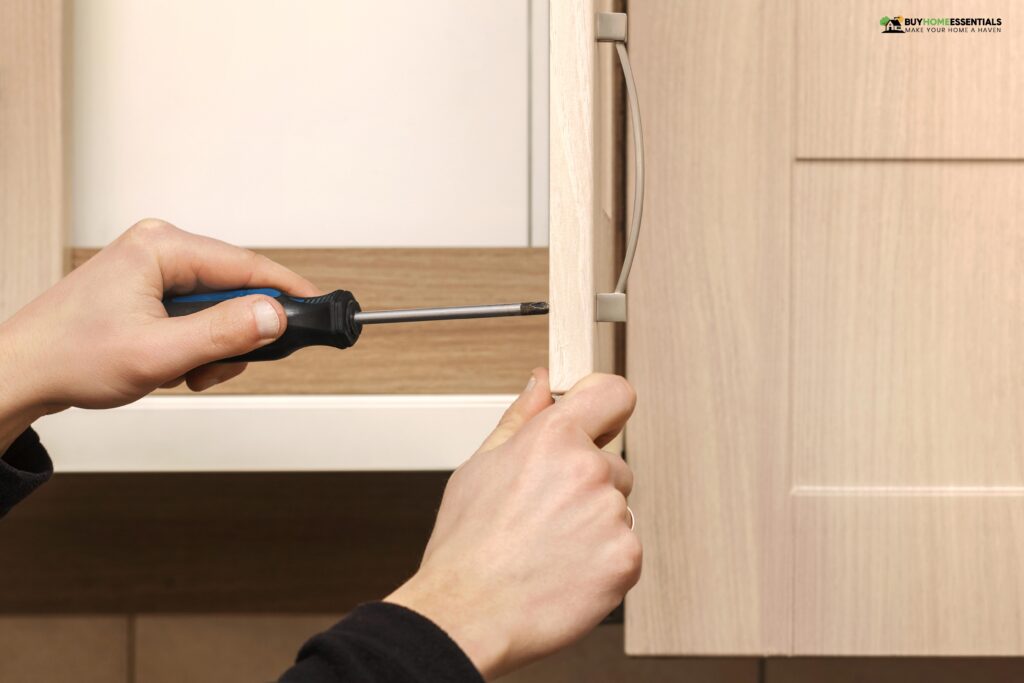 • Some kitchen cabinets are surprisingly heavy. When dealing with larger or bulkier cabinets, ensure they’re adequately supported. You might need a sturdy ladder.
